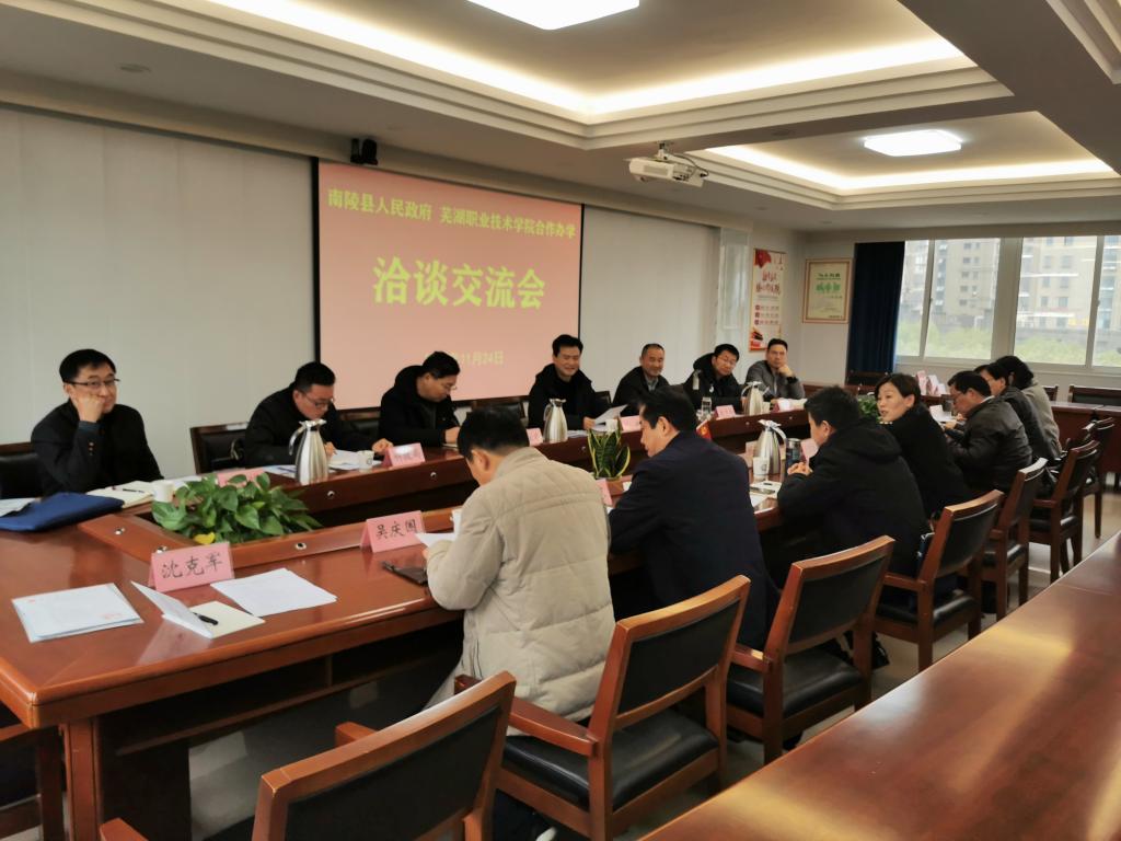 为提升职业教育服务地方经济社会发展能力水平, 11月24日,副校长刘育红率电气与自动化学院、继续教育学院、人力资源处、招生就业处、科研处、校企合作办赴南陵县调研。