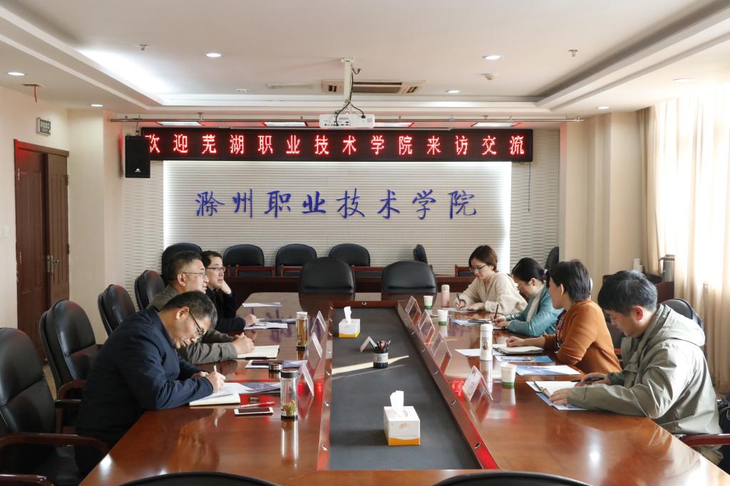 11月16日,副校长刘育红率校企合作办公室赴滁州职业技术学院考察交流,学习安徽滁州职业教育集团先进经验。滁州职业技术学院党委委员、校长助理、滁州职教集团秘书长穆松,滁州市教体局职成科负责人、滁州职教集团职业院校合作委员会副主任蒋新华,滁州职教集团副秘书长、招生就业处副处长周多道热情接待。芜湖市教育局职成科科长戚梅陪同考察。