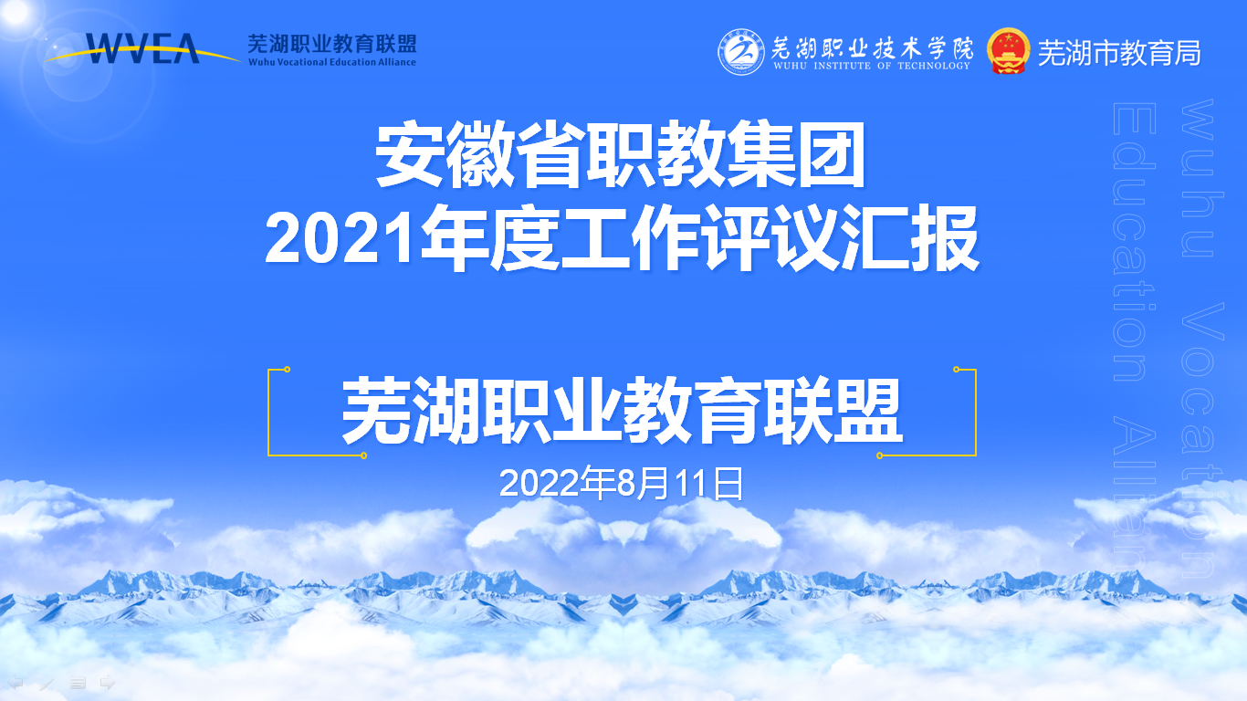 8月11日下午,由安徽省教育厅主办的安徽省职业教育集团2021年度工作评议会在安庆召开。会议分为集团陈述和答疑两个环节,全省54个职教集团牵头单位负责人及相关工作人员参加会议。我校副校长、芜湖职教联盟副理事长刘育红代表芜湖职教联盟通过网络视频汇报了职教联盟过去一年的工作。市教育局、我校部分工作人员参加了会议。