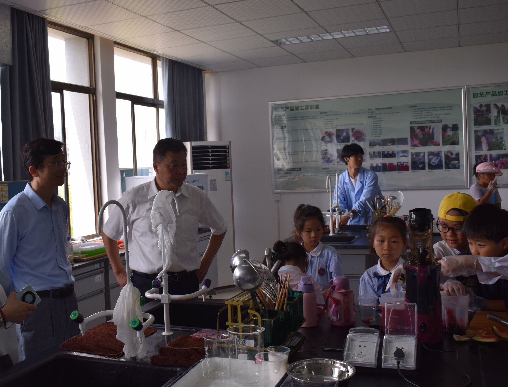 此次职业体验活动在市政府、市教育局,校领导,相关职能部门及二级学院负责人指导下,职业体验活动经过认真设计、编排,并制定详细的工作方案。文津校区非遗体验——陶艺制作项目,通过陶瓷历史沿革介绍及陶瓷产品制作让学生了解中国悠久的陶瓷文化,对陶瓷的产生和制作有系统的认识,掌握陶艺的基本技法、造型语言和表现手法。食品与生物工程学院开展了烘焙食品制作与品鉴项目,学生体验了戚风蛋糕及葡式蛋挞的制作与包装。园林园艺学院带领学生参观实训基地及多肉种植,学习水果果冻及牛奶果冻的制作。材料工程学院组织教师进行动植物细胞结构讲解、显微镜使用演示及学生体验实操。